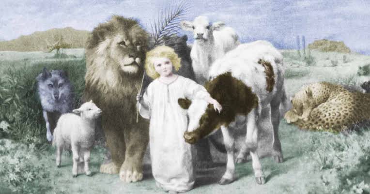 Isaiah 11:6–9 (NKJV): The wolf also shall dwell with the lamb, The leopard shall lie down with the young goat, The calf and the young lion and the fatling together; And a little child shall lead them. 7 The cow and the bear shall graze; Their young ones shall lie down together; And the lion shall eat straw like the ox. 8 The nursing child shall play by the cobra’s hole, And the weaned child shall put his hand in the viper’s den. 9 They shall not hurt nor destroy in all My holy mountain, For the earth shall be full of the knowledge of the Lord As the waters cover the sea.